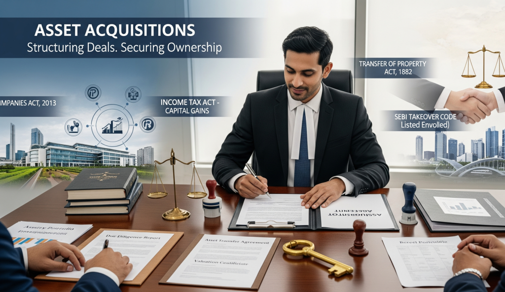 Our firm offers comprehensive legal support in asset acquisition transactions—whether movable, immovable, or intellectual property. We assist with due diligence, contract drafting, regulatory compliance, negotiations, and risk mitigation. From individual buyers to corporate clients, we ensure every acquisition is legally sound, transparent, and aligned with your strategic objectives.