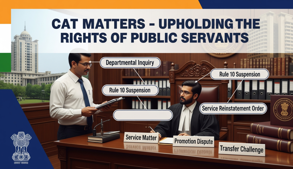 The Central Administrative Tribunal (CAT) is a specialized judicial body established under the Administrative Tribunals Act, 1985, to adjudicate disputes and complaints relating to recruitment, promotion, transfers, disciplinary actions, and other service matters of public servants and government employees.